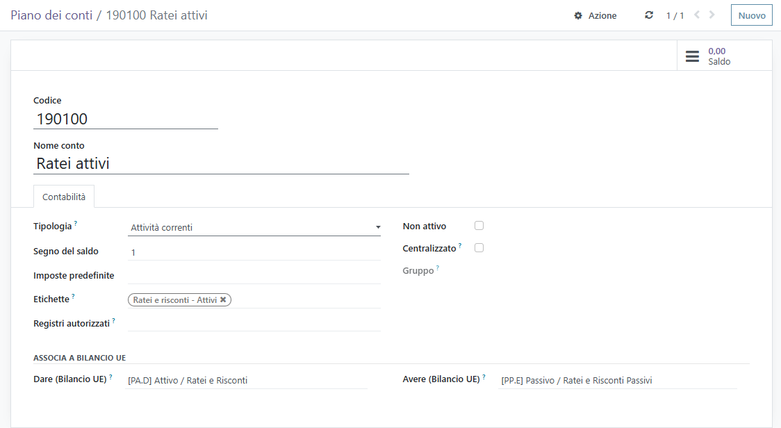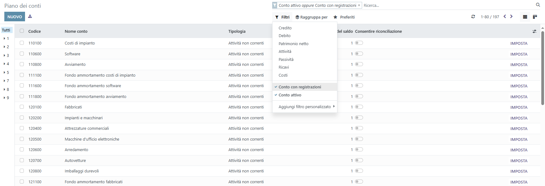 Gestire il piano dei conti Odoo